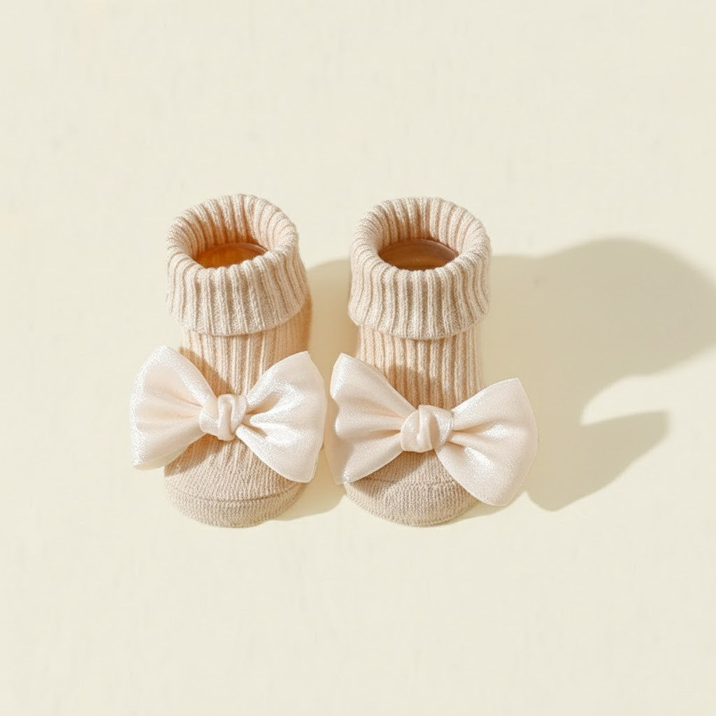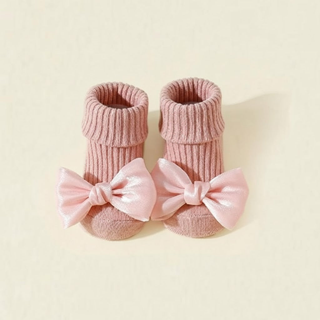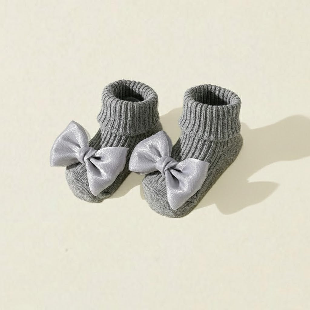 Produkttyp: Halkfria babysockor med rosett
