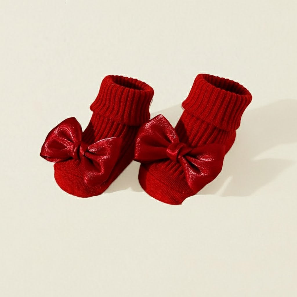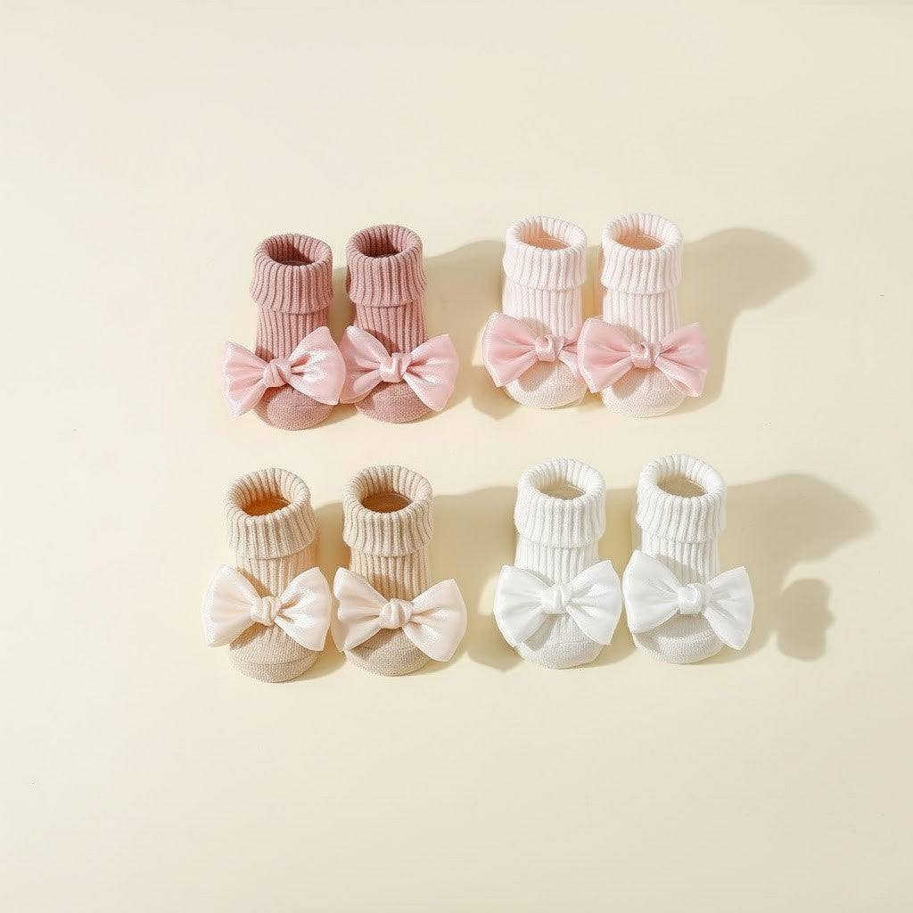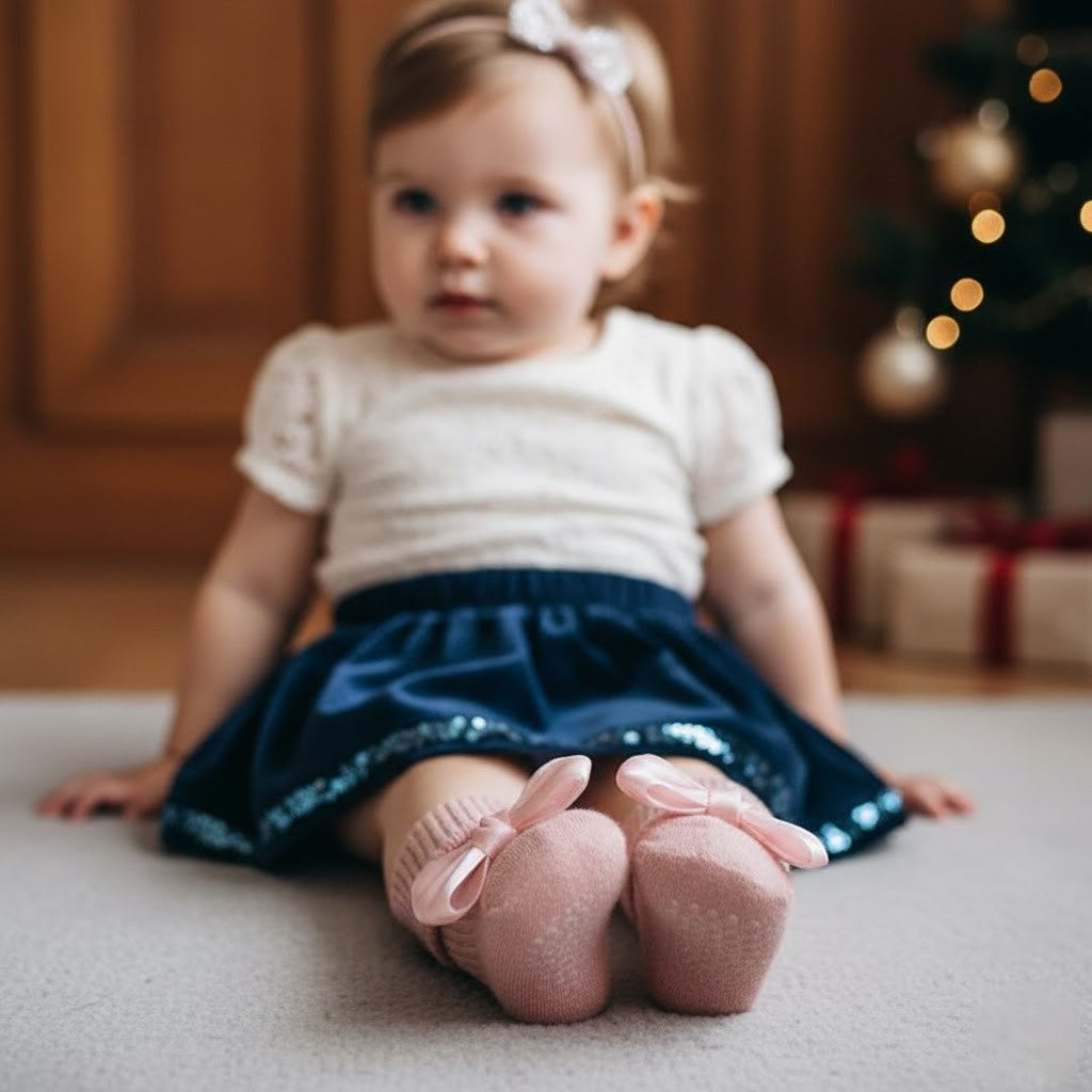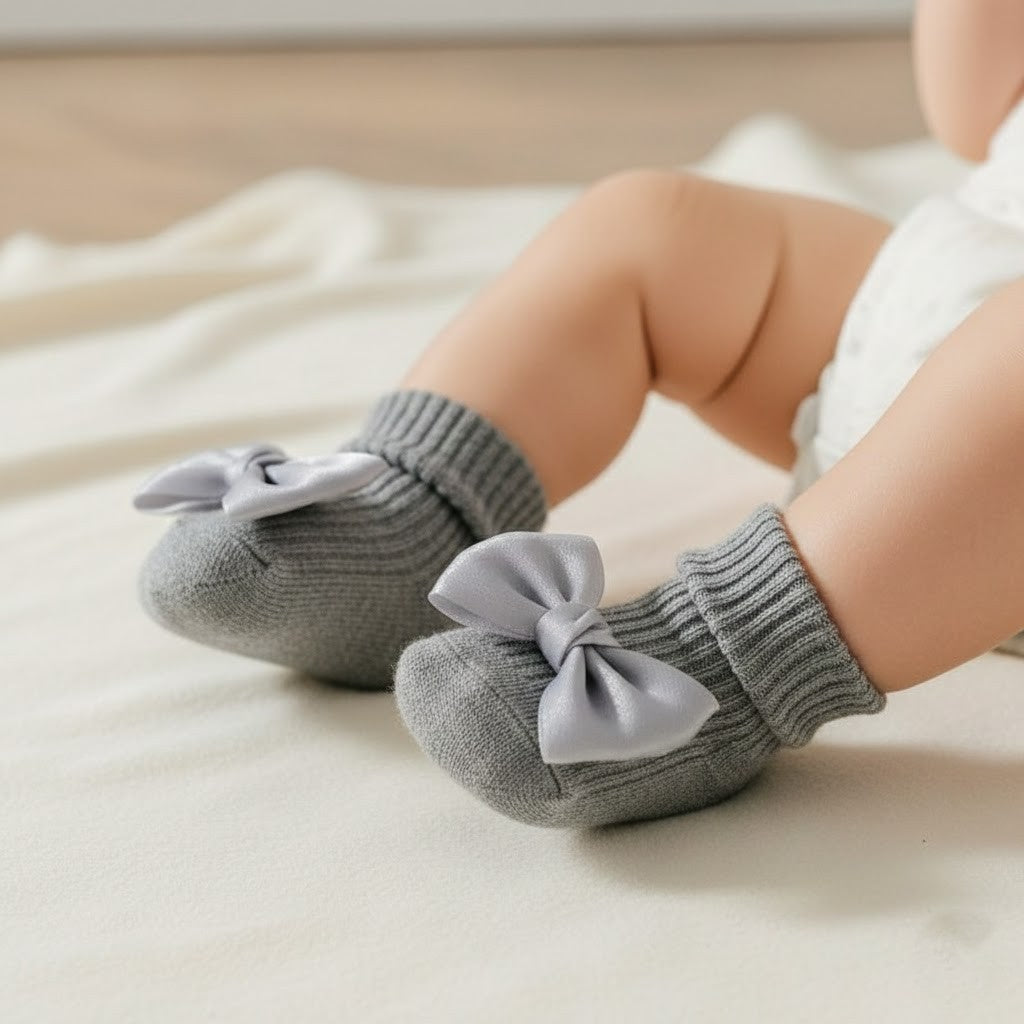 Produkttyp: Halkfria babysockor med rosett