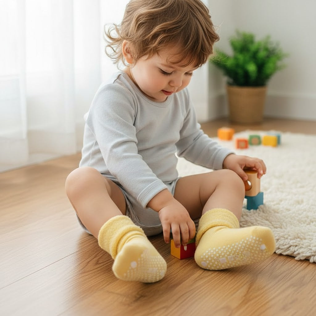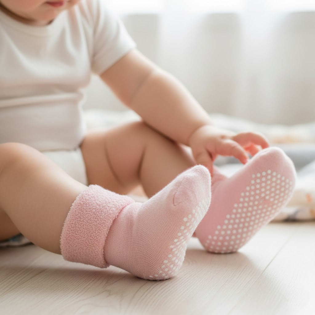 Användning: Perfekt för krypning, lek och första steg samt idealisk som vardagsstrumpa eller present