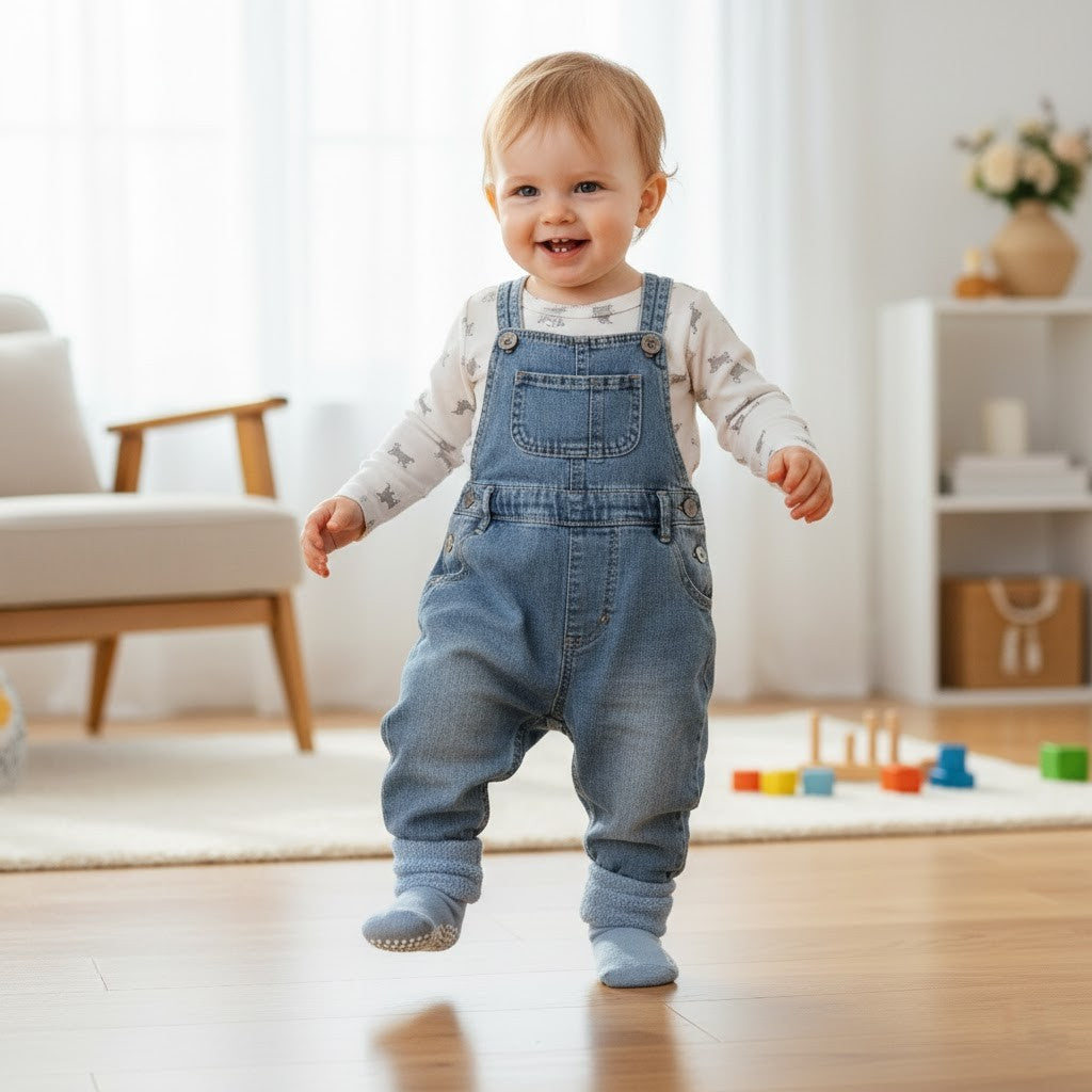 När din bebis börjar sparka, krypa eller ta sina första steg är säkerhet avgörande. De integrerade halkprickarna på sulan ger ett stabilt grepp på hala golv som trä, kakel och laminat. Det innebär mindre risk för att halka och mer frihet att utforska världen. Ett tryggt val för föräldrar som vill kombinera rörelseglädje med säkerhet.
