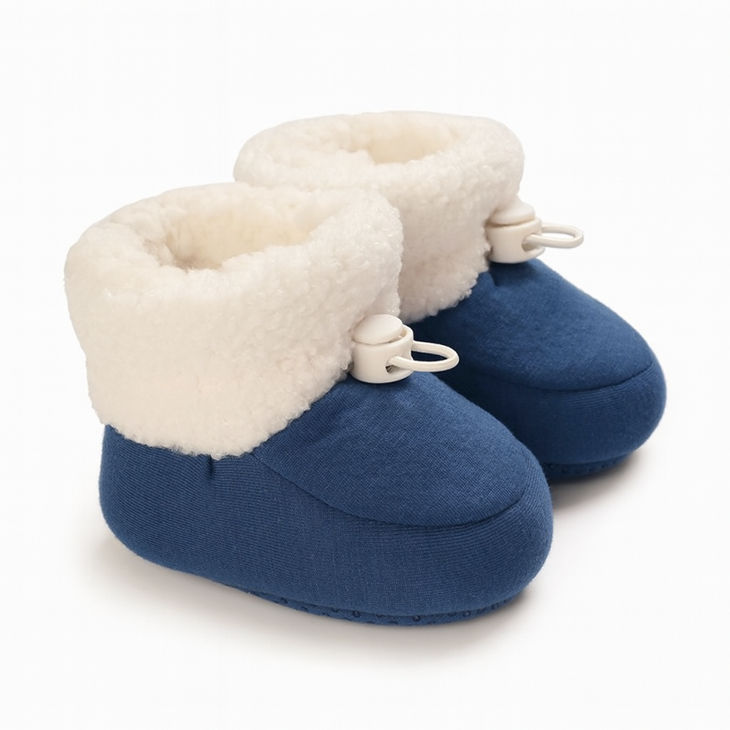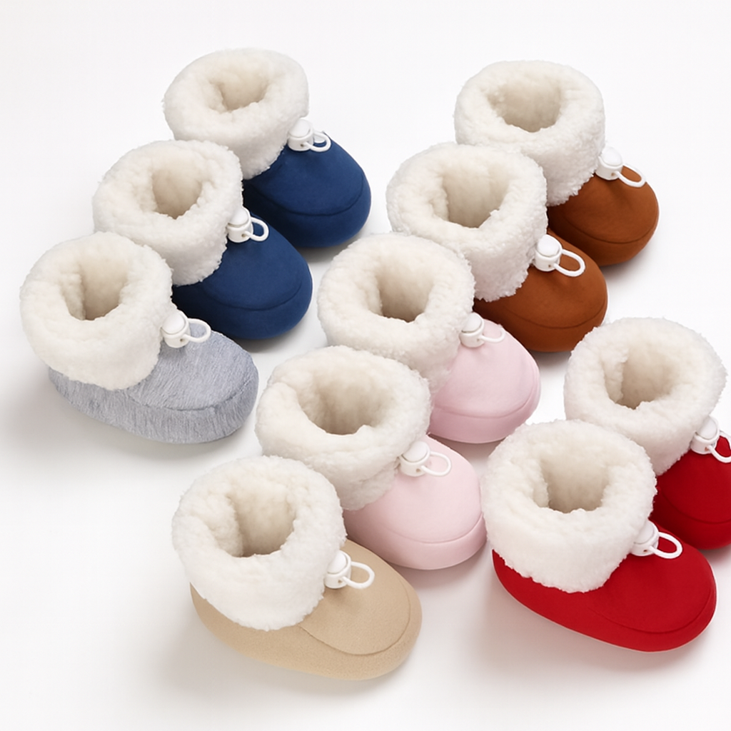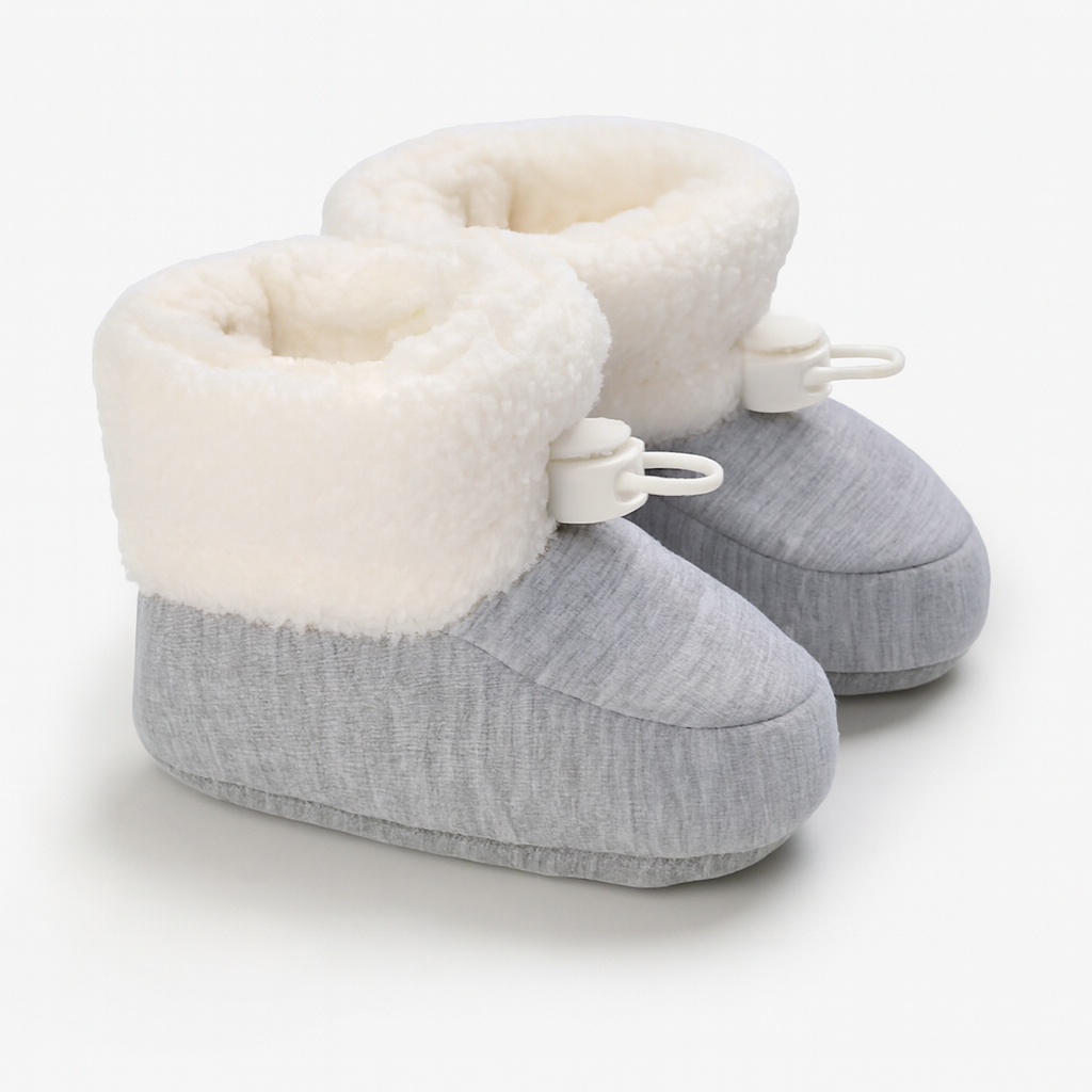 Dessa varma babyskor i bomull är designade för att ge ditt barn en trygg, ombonad känsla hela dagen. Det mjuka bomullstyget är skonsamt mot känslig babyhud och hjälper till att hålla små fötter varma utan att bli instängda. Perfekta för kyligare dagar hemma, i vagnen eller på resan – ett självklart val för nyfödda och små bebisar.