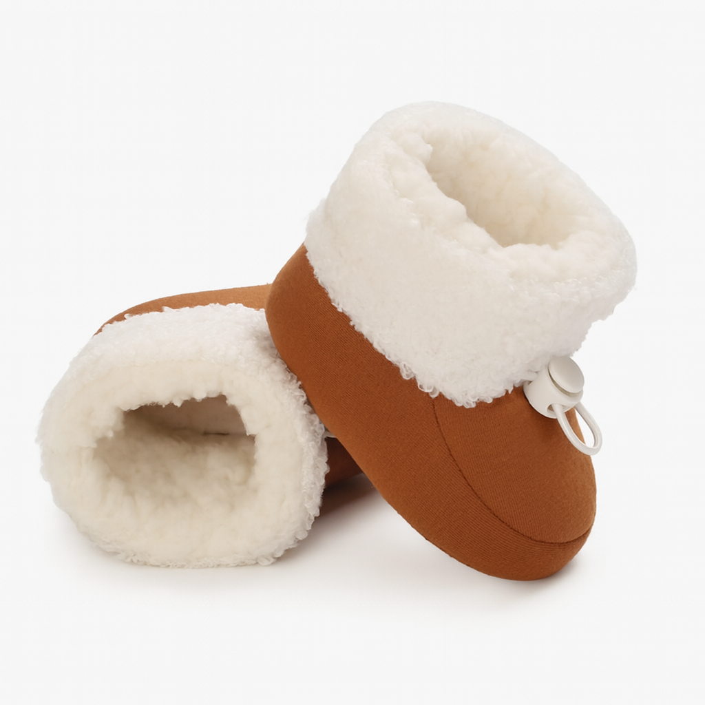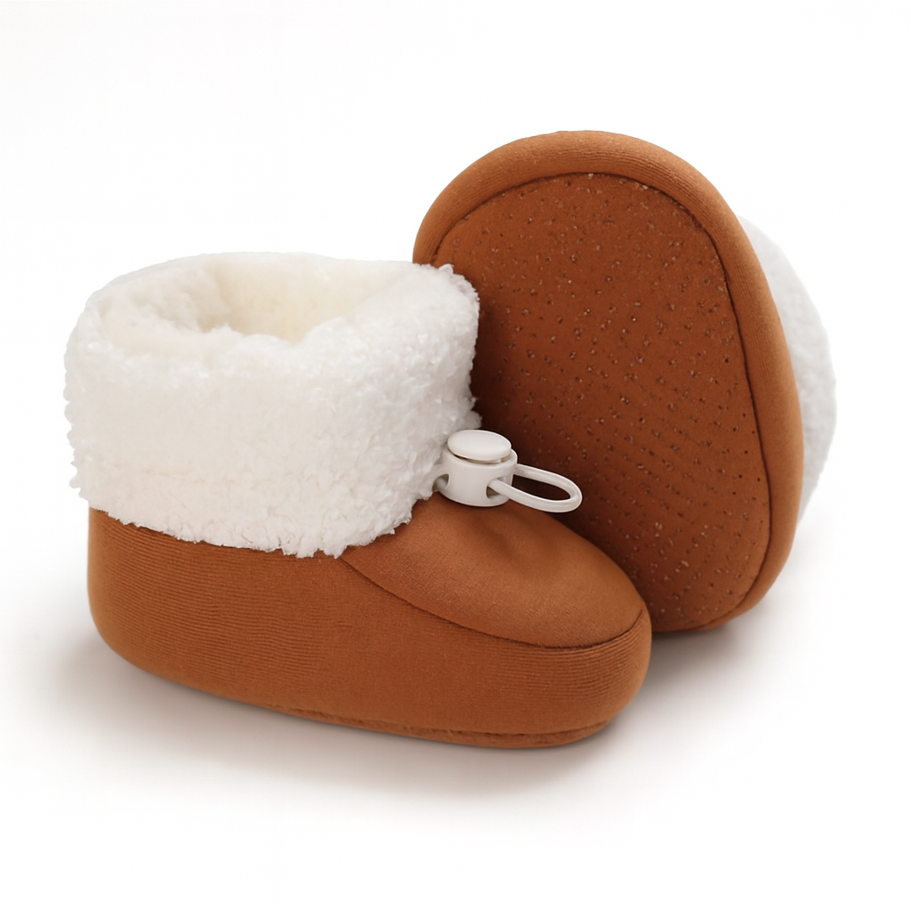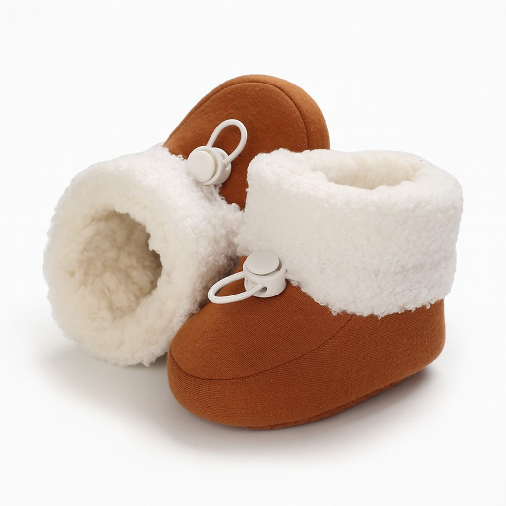 Dessa varma babyskor i bomull är designade för att ge ditt barn en trygg, ombonad känsla hela dagen. Det mjuka bomullstyget är skonsamt mot känslig babyhud och hjälper till att hålla små fötter varma utan att bli instängda. Perfekta för kyligare dagar hemma, i vagnen eller på resan – ett självklart val för nyfödda och små bebisar.