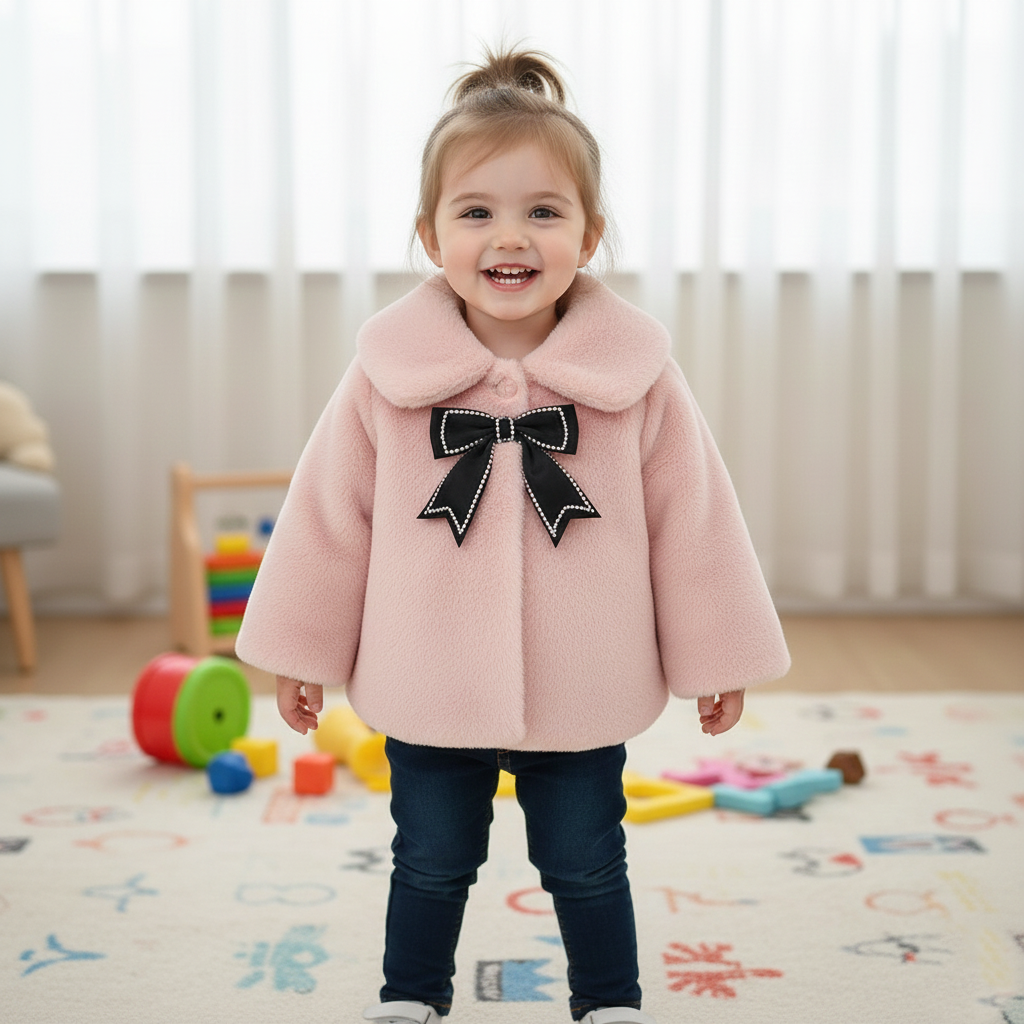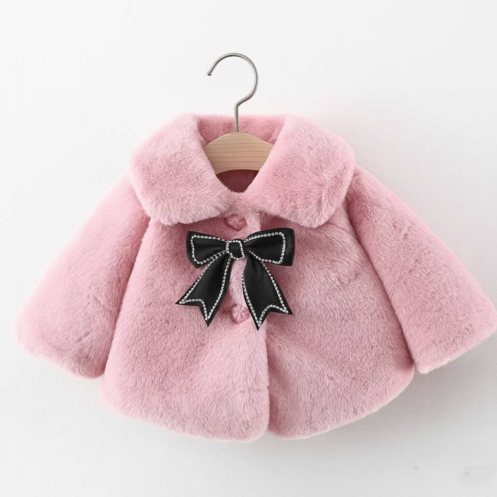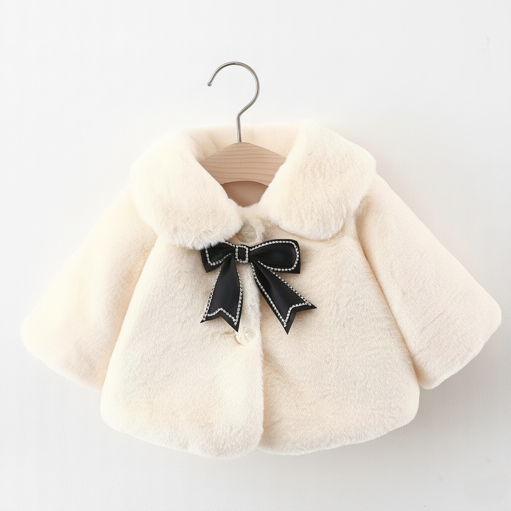 Denna tjej jacka kombinerar tidlös elegans med barnvänlig komfort. Den mjuka, fluffiga ytan ger en lyxig känsla samtidigt som den värmer skönt under kyliga dagar. Den ljusa färgen skapar ett rent och stilfullt uttryck som passar perfekt för både vardag och fest. En jacka som får ditt barn att känna sig speciell – varje gång den tas på.