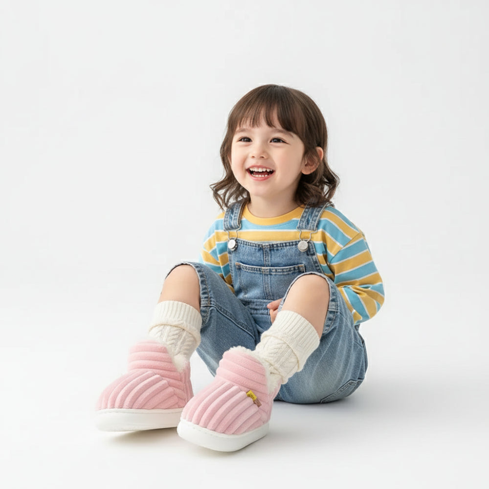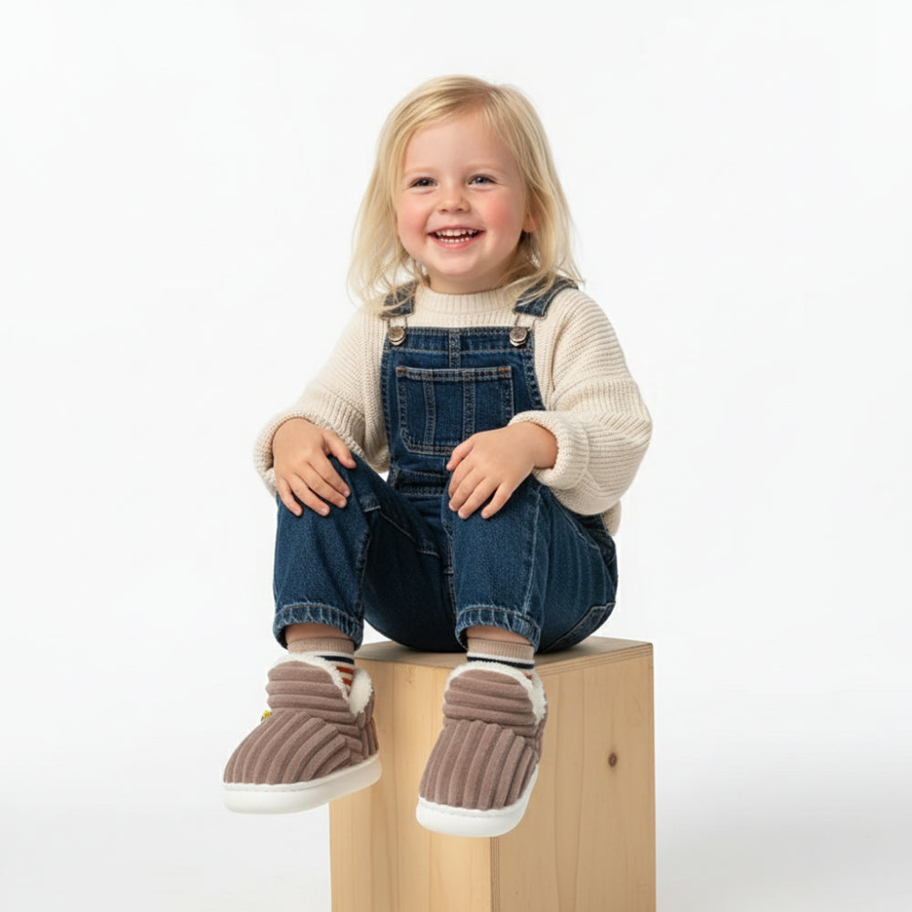 Känn hur värmen omfamnar ditt barns fötter under kalla vintermorgnar. Dessa mjuka tofflor, med sitt plyschfoder, ger en trygg och halkfri yta att springa runt på. Perfekta för lekstunder inomhus när snön faller utanför. En alldeles perfekt julklapp.