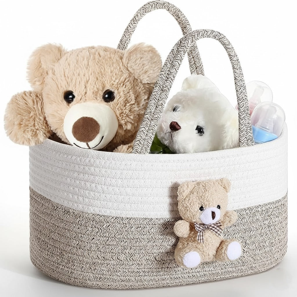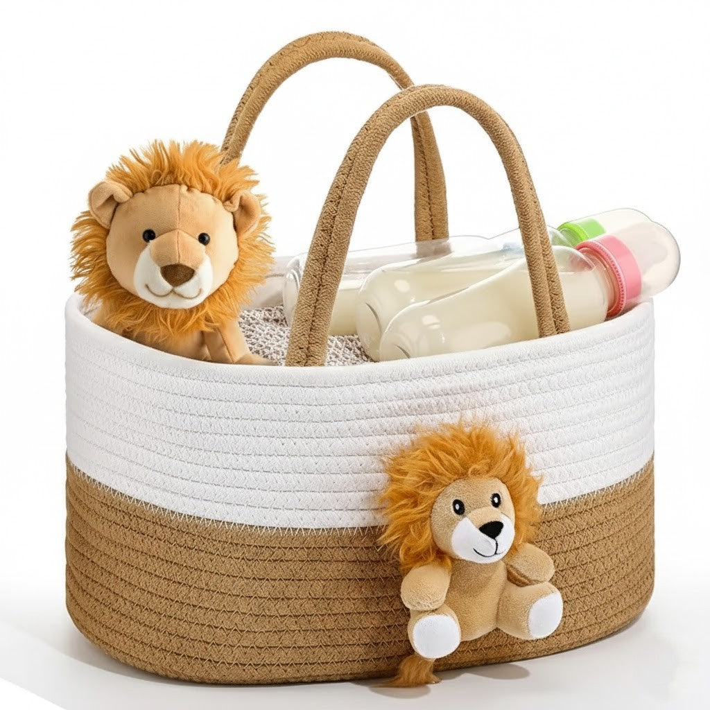 Denna cotton rope storage basket kombinerar funktion med charm. Tillverkad av tätvävd bomullsrep är korgen både mjuk och stabil – perfekt för barnrum och hem där säkerhet och stil går hand i hand. Den lena strukturen skyddar små fingrar och ömtåliga ytor, samtidigt som den behåller sin form även när den fylls med leksaker, blöjor eller filtar. De söta djurdetaljerna skapar en varm, lekfull känsla som gör förvaringen till en del av inredningen, inte något som behöver döljas.