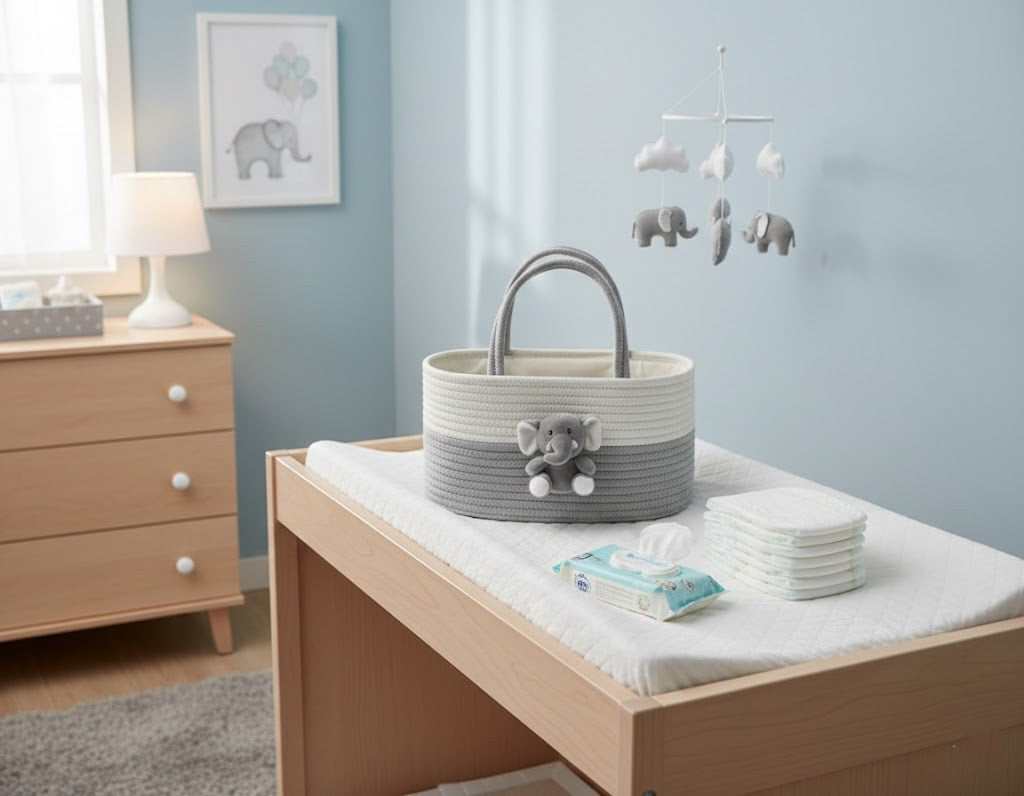 Form: Oval för enkel placering på skötbord, hylla eller golv