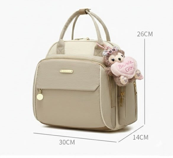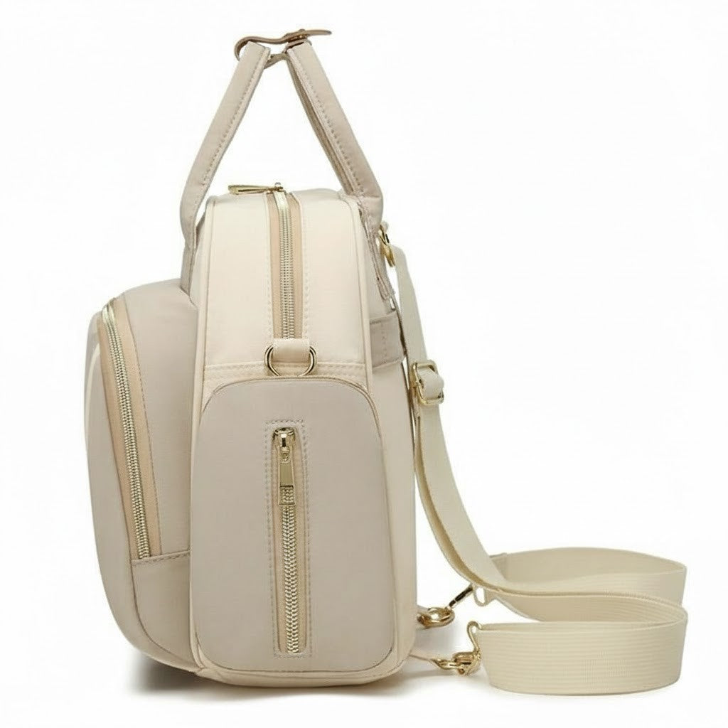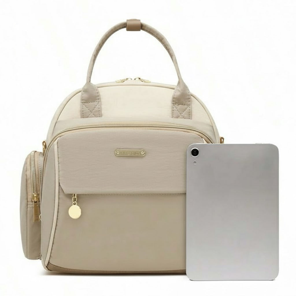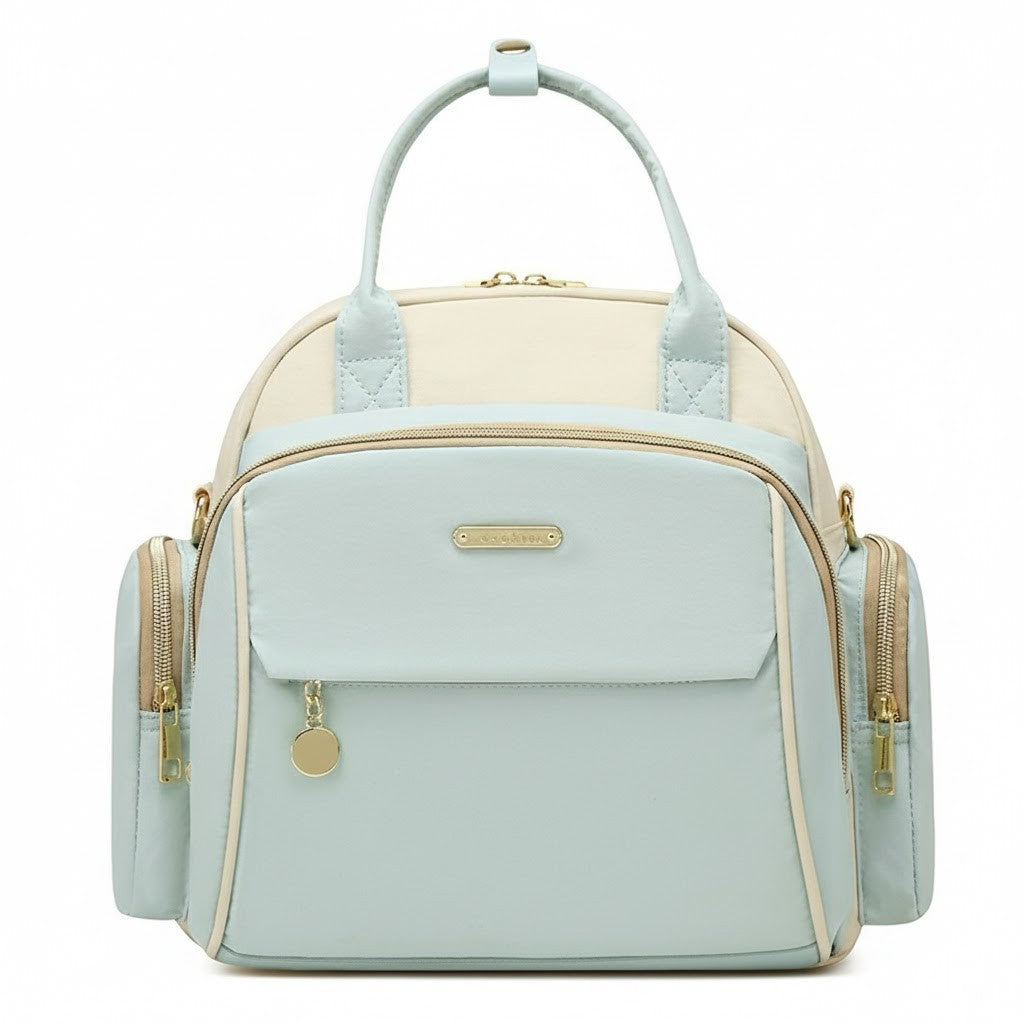 Den här mamma- och babyväskan är designad för att göra livet smidigare när du är på språng med ditt barn. Med en harmonisk färgpalett, eleganta gulddetaljer och ett modernt uttryck känns den lika rätt till barnvagnen som till cafébesöket. Det är inte bara en praktisk skötväska – det är en accessoar som låter dig känna dig organiserad, lugn och självsäker, oavsett om dagen bjuder på lekdejt, resa eller vardagsärenden.