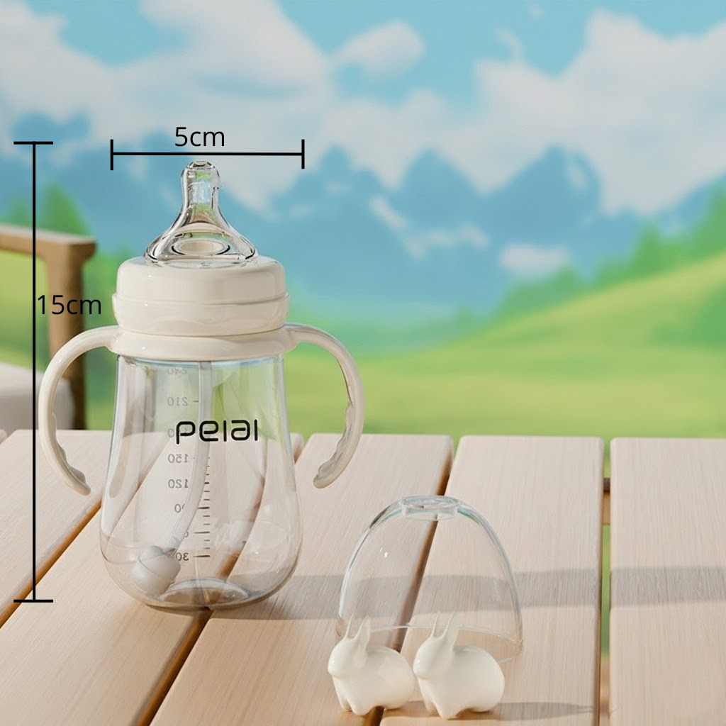 Denna nappflaska är skapad för att ge ditt barn en naturlig och bekväm matningsupplevelse. Den mjuka, bröstliknande dinappen gör övergången mellan amning och flaska enkel, vilket minskar stress för både barn och förälder. Varje klunk känns trygg och välbekant, vilket hjälper barnet att äta lugnt och harmoniskt – hemma, på resan eller mitt i natten.