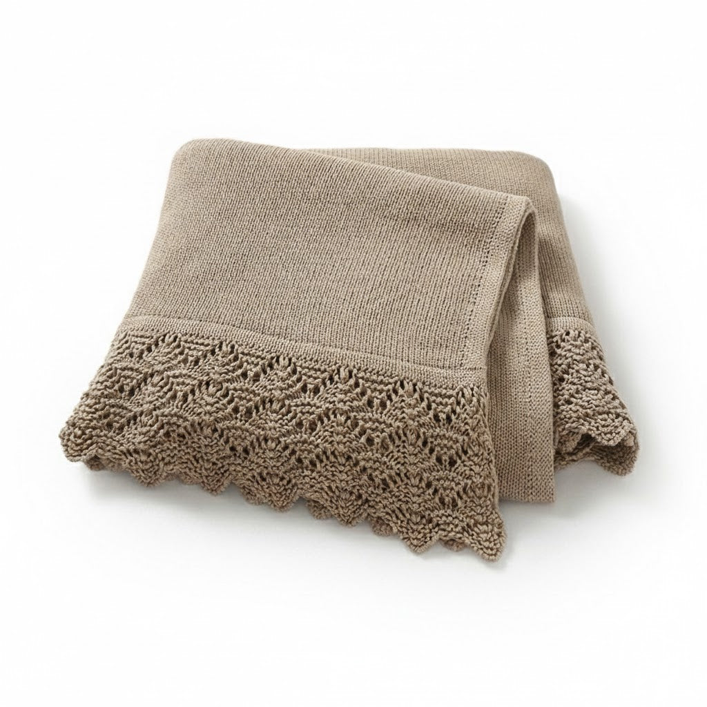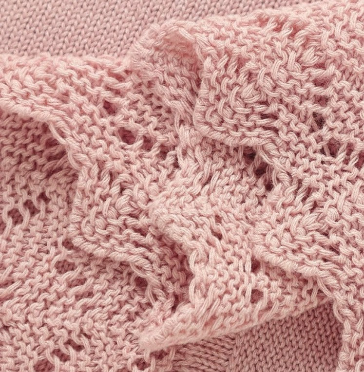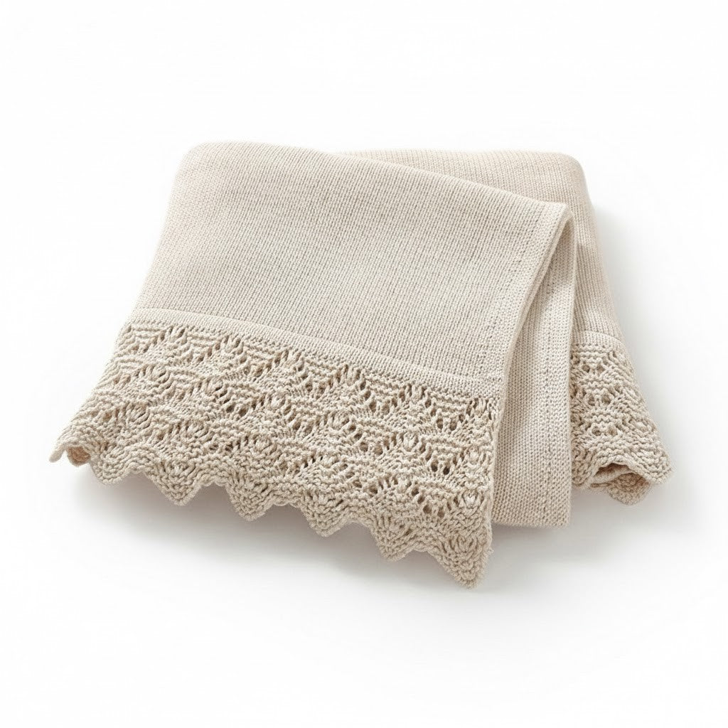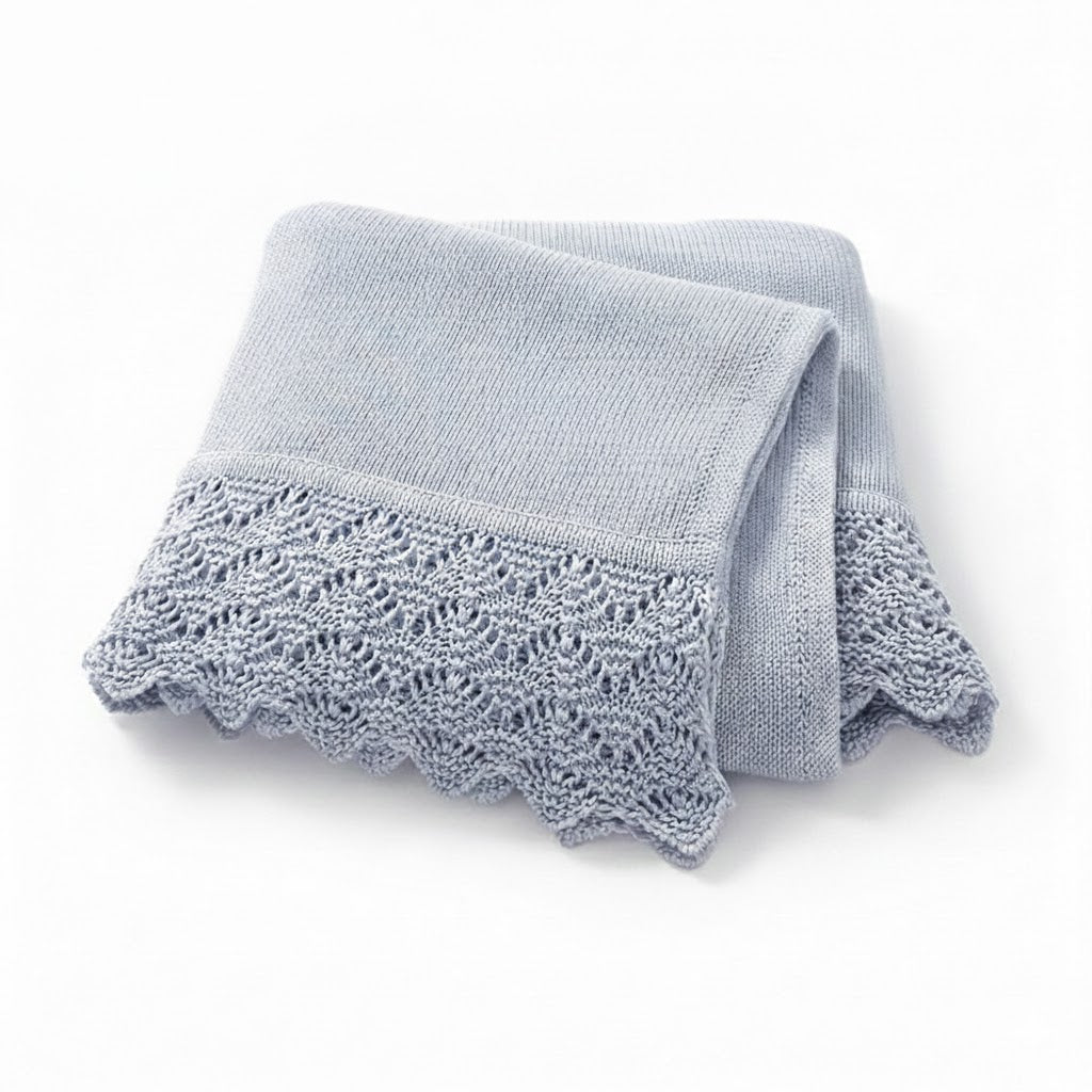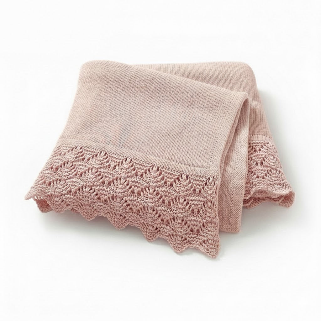 Den skickande babyfilten är skapad för att ge ditt barn en trygg, varm och ombonad känsla – precis som en mjuk kram. Med sitt luftiga stickade mönster och lena struktur omsluter filten barnet utan att bli för varm. Perfekt för nyfödda och små bebisar som behöver både komfort och andningsförmåga, oavsett om det är i vagnen, sängen eller famnen.