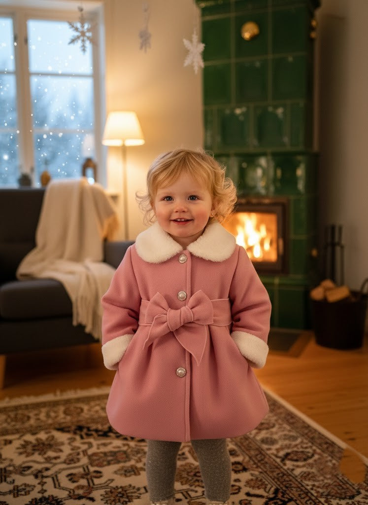 Denna eleganta barnkappa är skapad för att hålla små äventyrare varma under kyliga höst- och vinterdagar. Det mjuka yttertyget kombineras med ett lent foder och en fluffig krage som skyddar mot vind och kyla. Perfekt för promenader, förskola eller familjeutflykter – kappan omsluter barnet i behaglig värme utan att kännas tung. Den är lika praktisk som den är charmig, och gör varje dag utomhus till en mysig upplevelse.